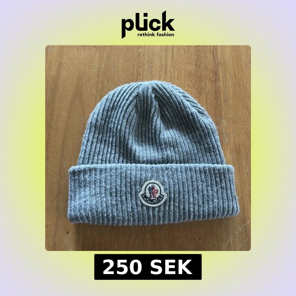 Grå mössa från Moncler med uppvikta kanter, lätt att matcha till outfit säljes då jag aldrig använder den. Pris kan diskuteras