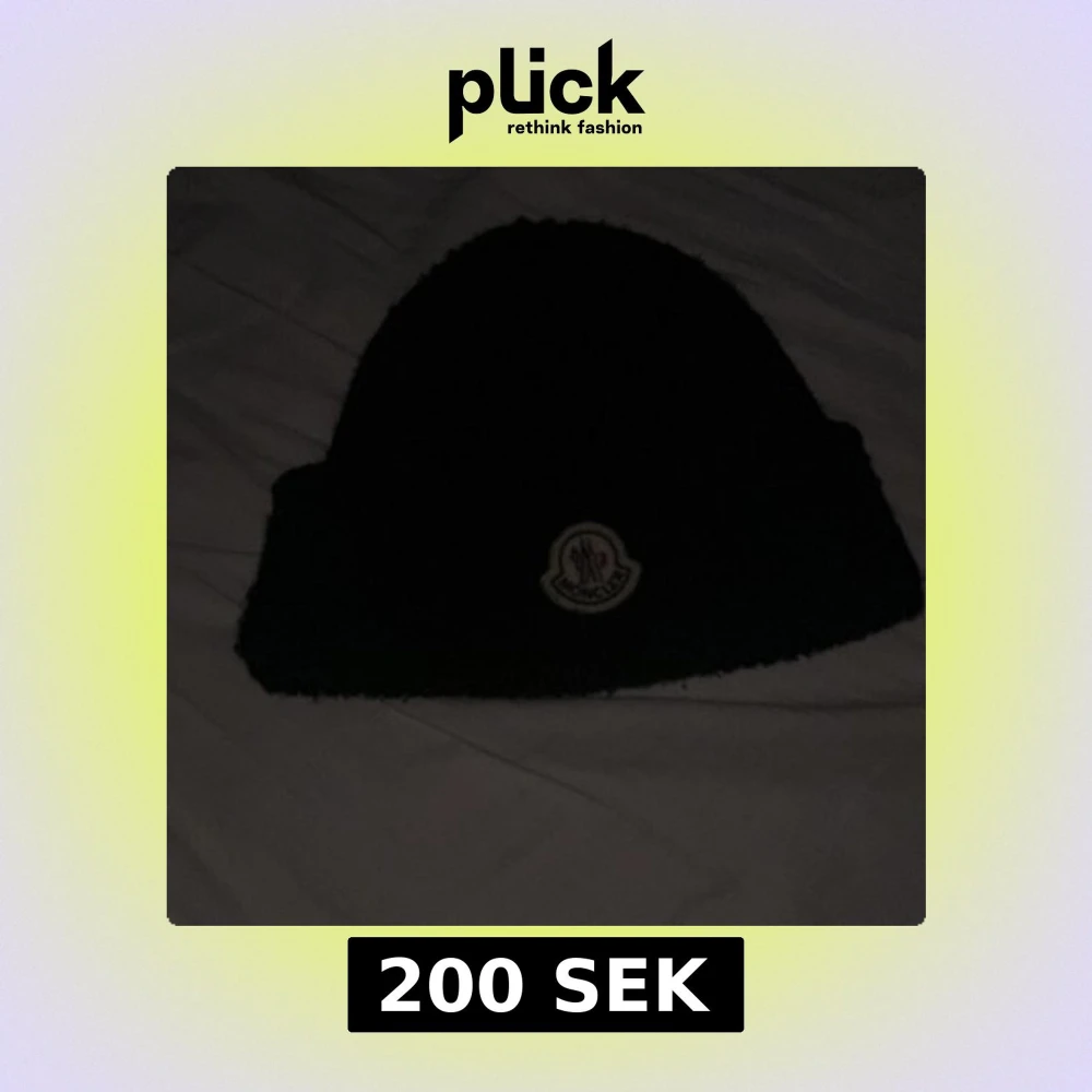Snygg svart mössa från Moncler med broderad logotyp framtill. Perfekt för kyliga dagar med stil. Tillverkad i ett mjukt och bekvämt material. Skick 7/10