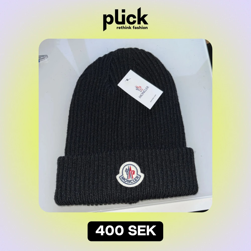 Säljer en snygg svart ribbad mössa från Moncler i nytt skick. Den är perfekt för vintern och har en stilren design med Moncler-loggan framtill. Mössan är i one size och passar de flesta. Håll dig varm och trendig i kylan!