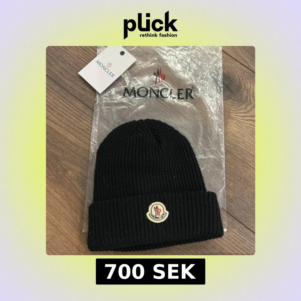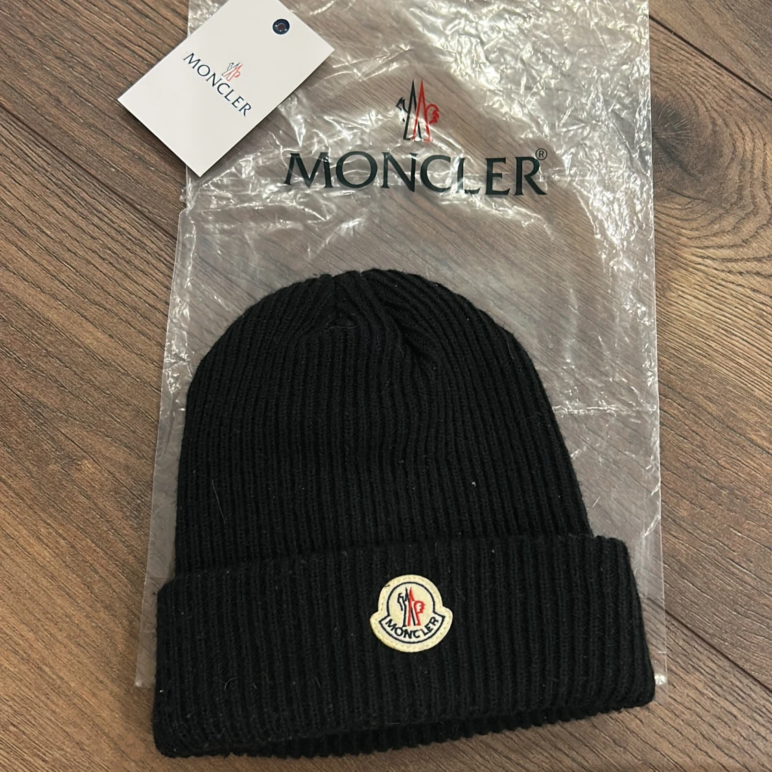 Svart ribbstickad mössa från Moncler med klassisk uppvikt kant och broderad logotyp framtill. Perfekt accessoar för kyliga dagar med stilren design och exklusiv känsla.
