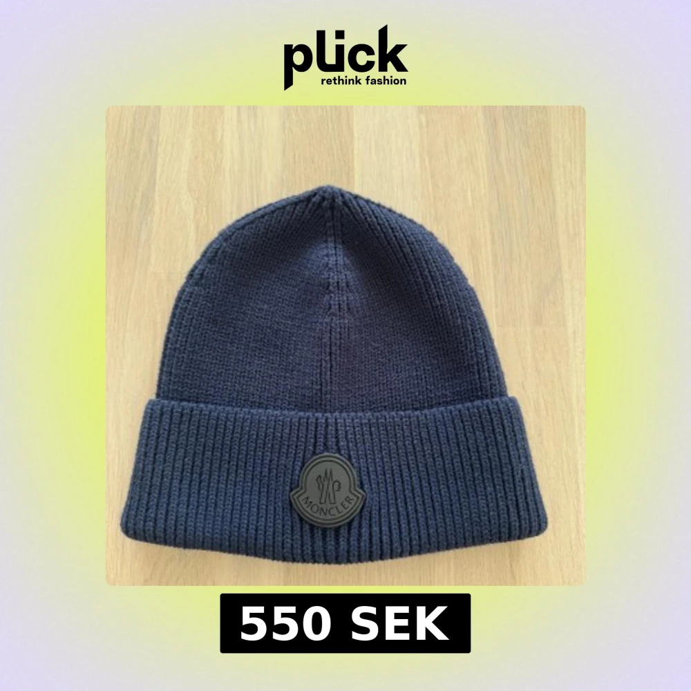 Snygg mörkblå mössa från Moncler med ribbad design och uppvikt kant. Perfekt för kyliga dagar med stilren look. Moncler-logga framtill ger en exklusiv touch. Mössan är aldrig använd och är helt ny som ni ser på bilderna, tagsen till mössan finns kvar och skickas med vid köp!