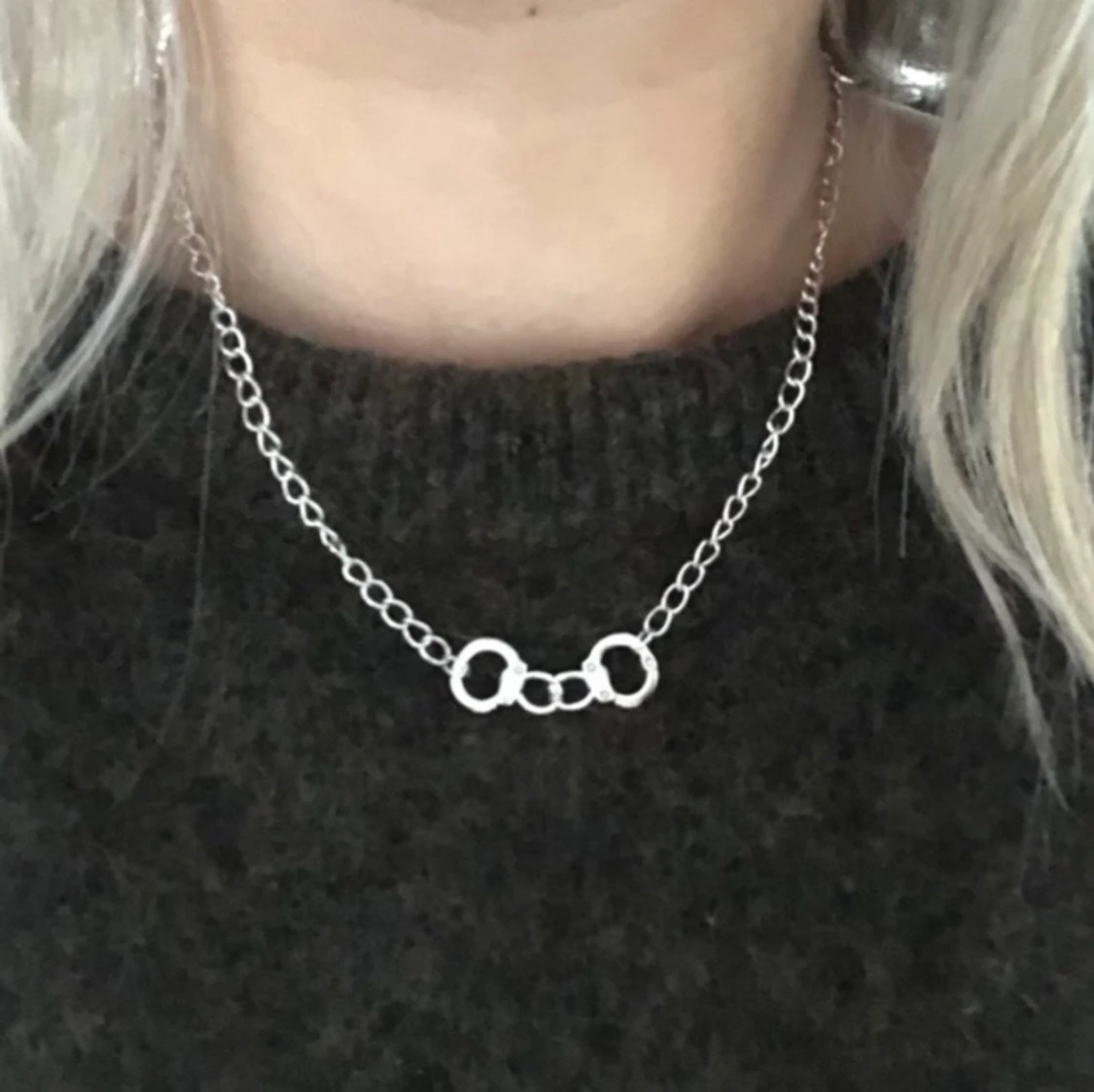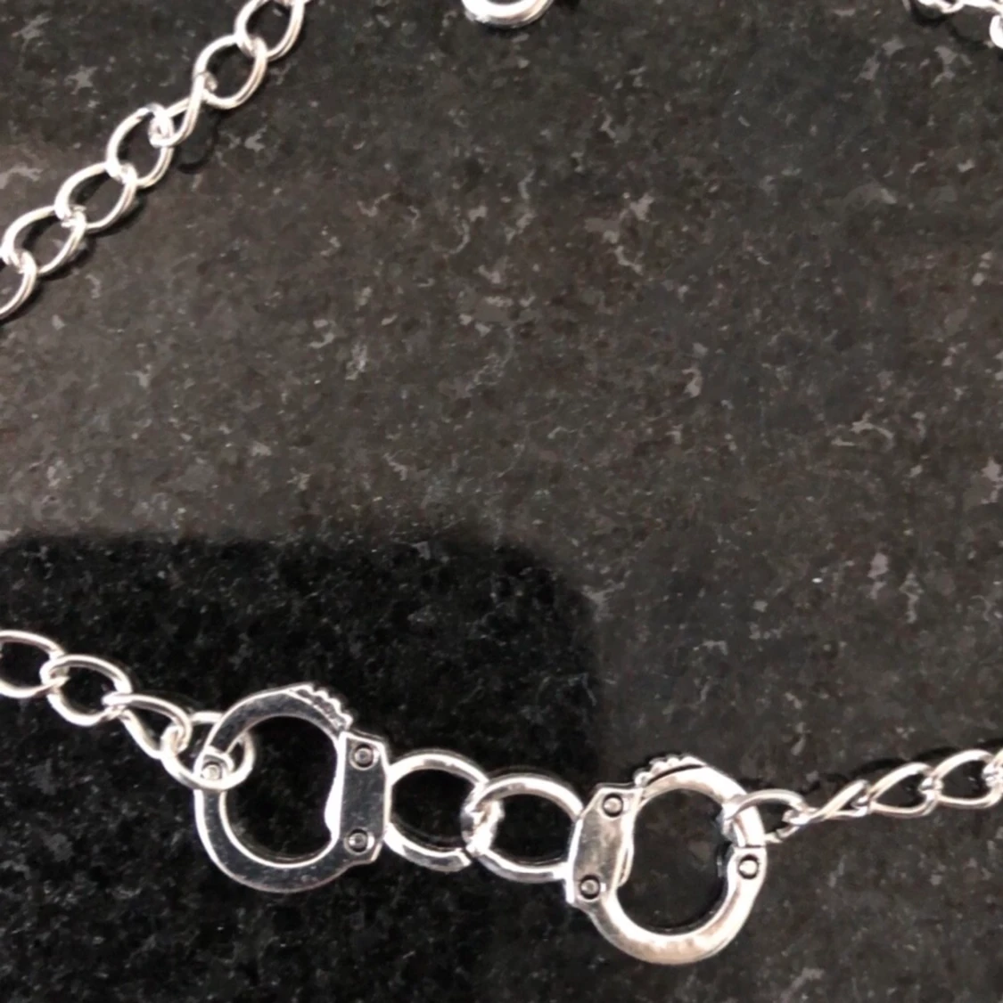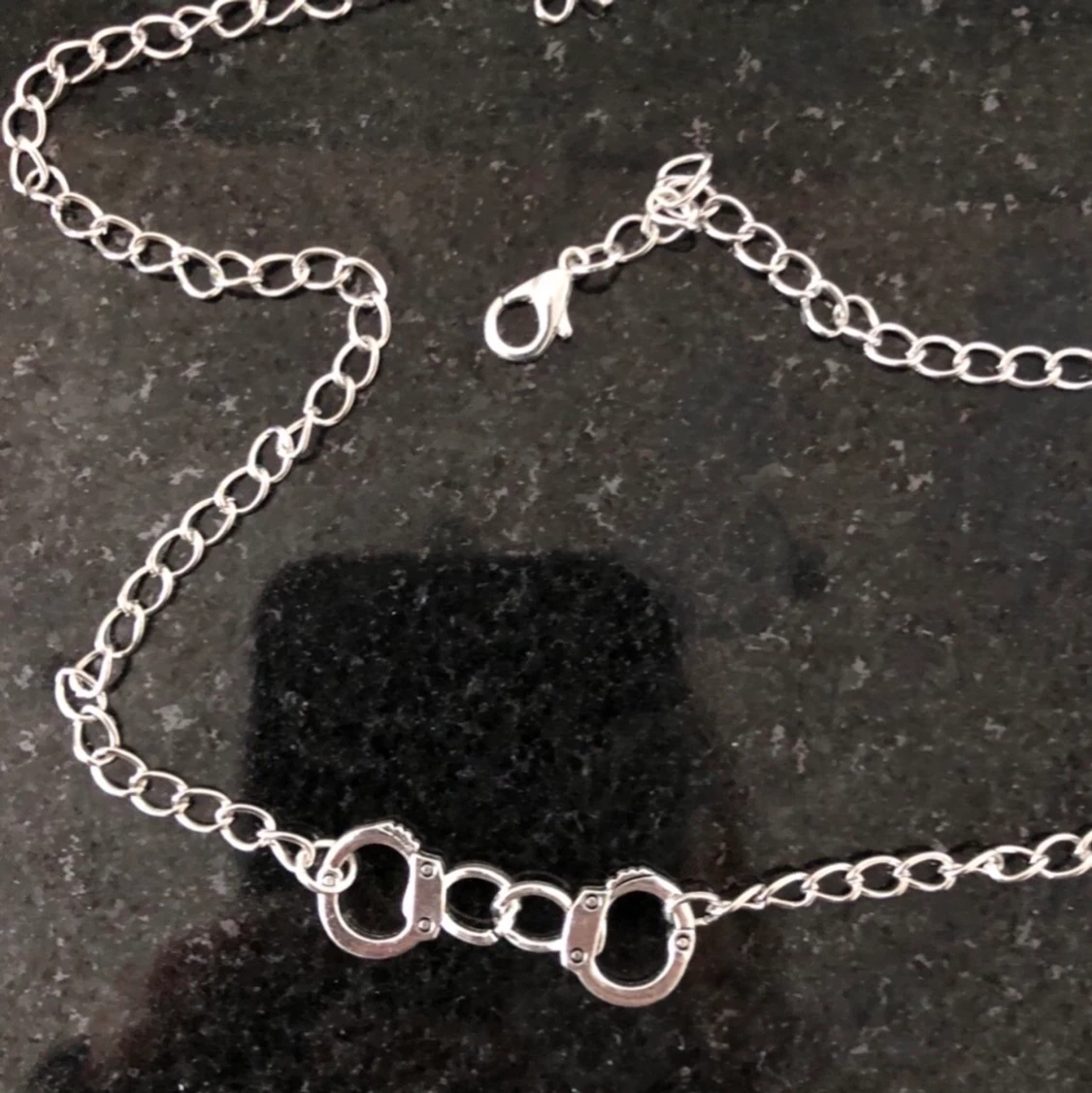 Super coolt halsband med handbojor! 80kr (frakten Ă€r inkluderad i priset). Kontakta mig vid intresse eller funderingarđđ