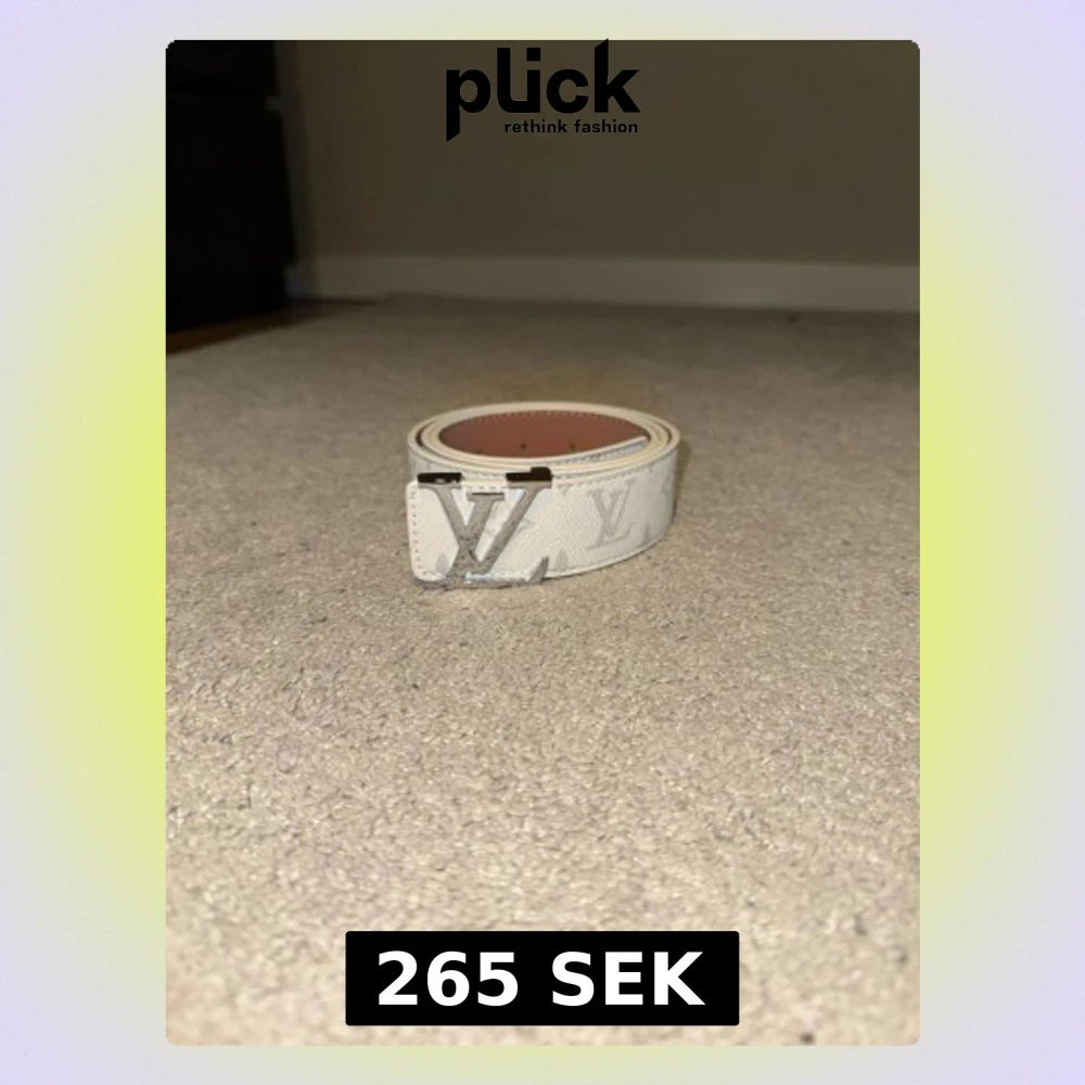 Vit bälte med ikoniskt monogrammönster och svart metallspänne. Stilren och lätt att matcha till både vardag och fest. Snygg detalj som lyfter vilken outfit som helst.
