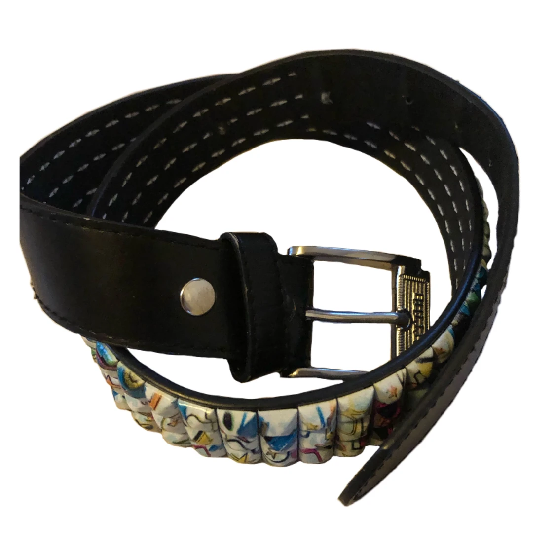 Nitbälte med coolt mönster :) passar de flesta då det är ganska långt, har gjort 2 extra hål längst in (bild 3) vissa nitar är lite skavda men inget som direkt syns