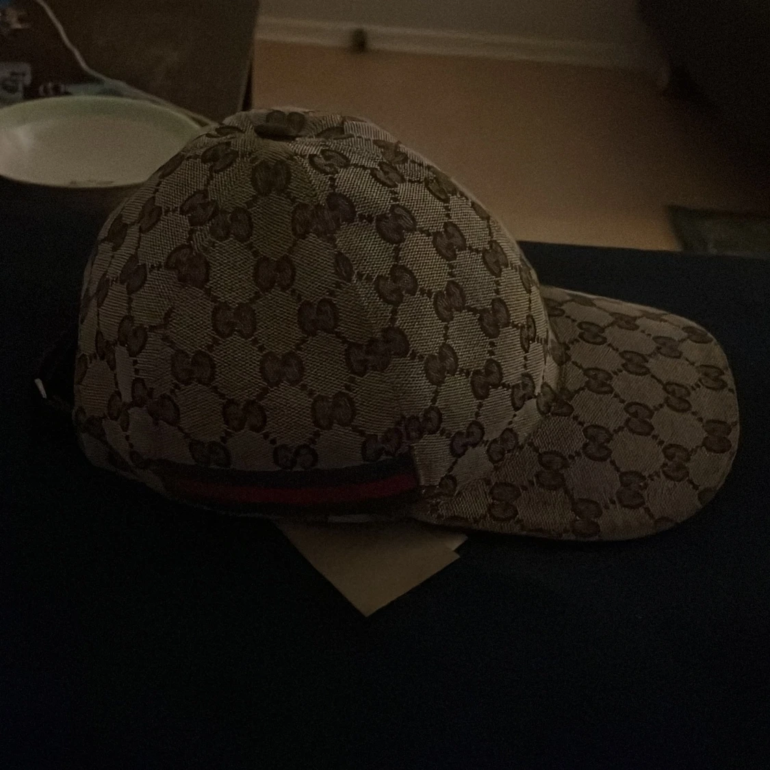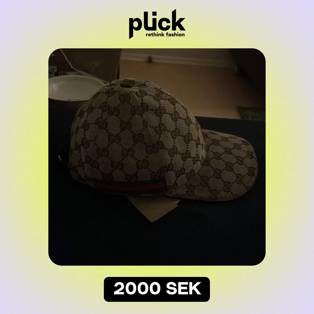 Säljer en snygg keps från Gucci i storlek XS. Den har ett klassiskt mönster i beige och brunt med märkets logga. Perfekt för att ge din outfit en lyxig touch. Kepsen är i mycket bra skick och passar perfekt för både vardag och fest.