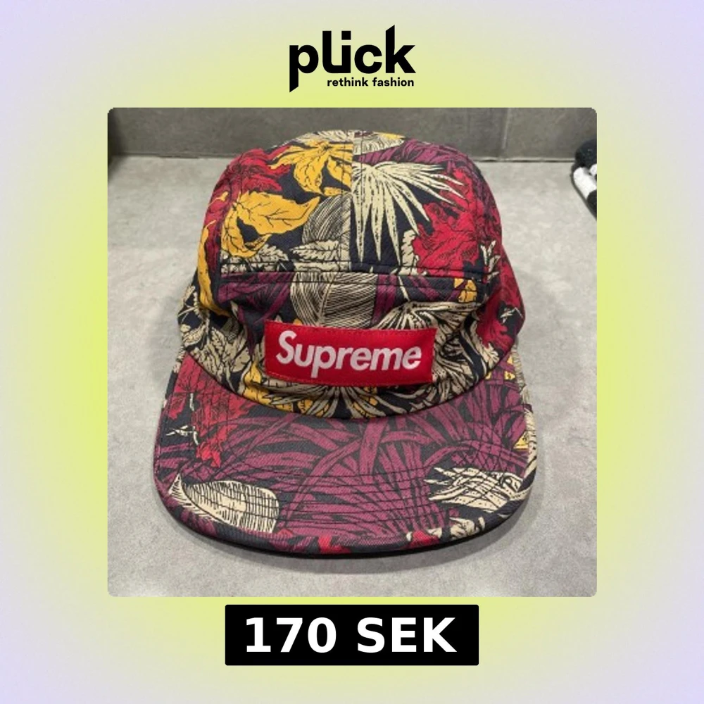 Snygg keps från Supreme med ett tropiskt mönster i rött, gult och beige. Kepsen har en justerbar rem baktill för perfekt passform och en tydlig Supreme-logga framtill. Perfekt för att ge din outfit en färgglad touch. ”Remen är klippt och du ska inte ha större huvud en 58 cm”
