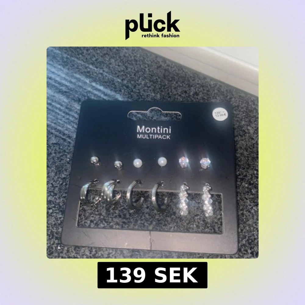 Multipack med sex par örhängen från Montini i silverfärg. Innehåller små studs, pärlstuds, glittriga stenar och hoops i olika storlekar samt ett par hängande örhängen med pärlor. Perfekt för att mixa och matcha till din stil.