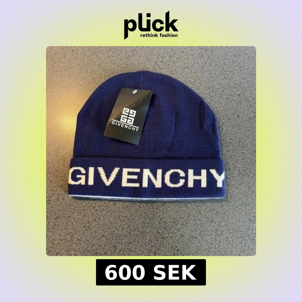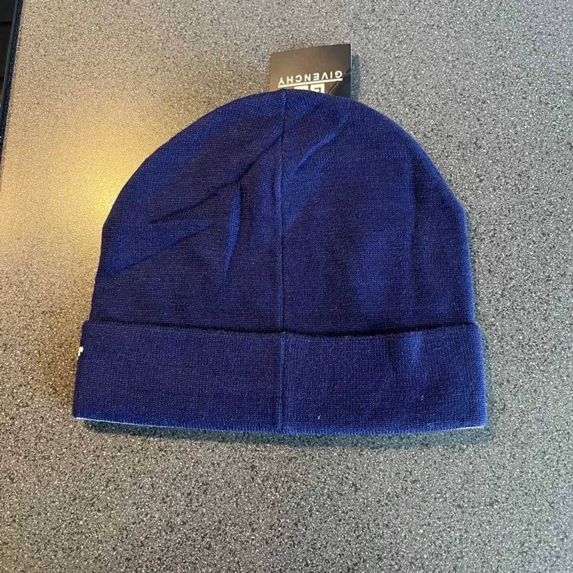 Snygg mörkblå mössa från Givenchy med vit logotyp framtill. Mössan är ribbstickad och har en uppvikt kant. Insidan är vit med en Givenchy-etikett. Perfekt accessoar för att lyfta din stil under kyliga dagar.