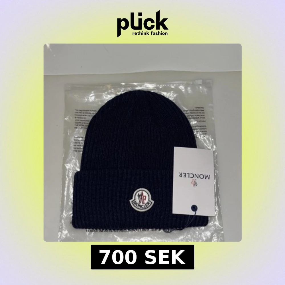Snygg mörkblå stickad mössa med broderad logotyp framtill. Perfekt för kyliga dagar och ger en stilren look.