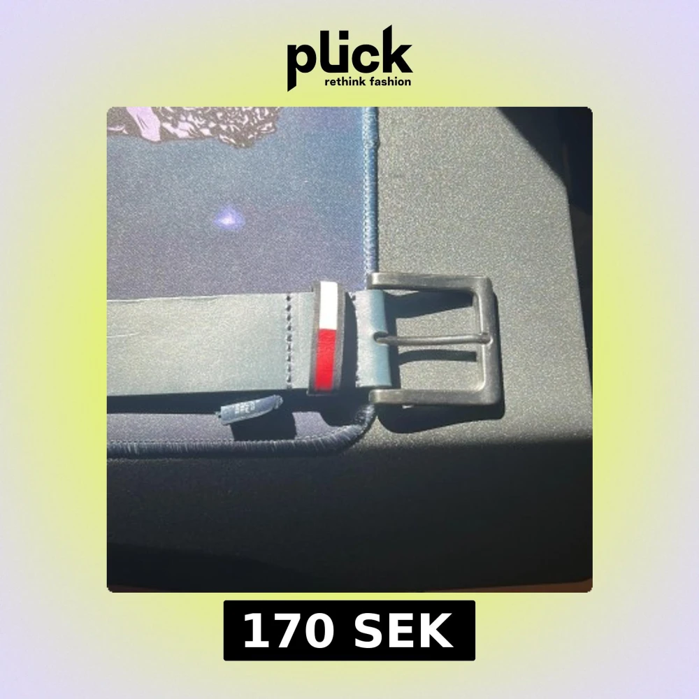 Snyggt mörkblått bälte från Tommy Hilfiger i äkta skinn. Bältet har en klassisk metallspänne och en liten detalj med röd, vit och blå rand vid fästet. Längd 85 cm (34 tum). Perfekt för att lyfta din outfit.