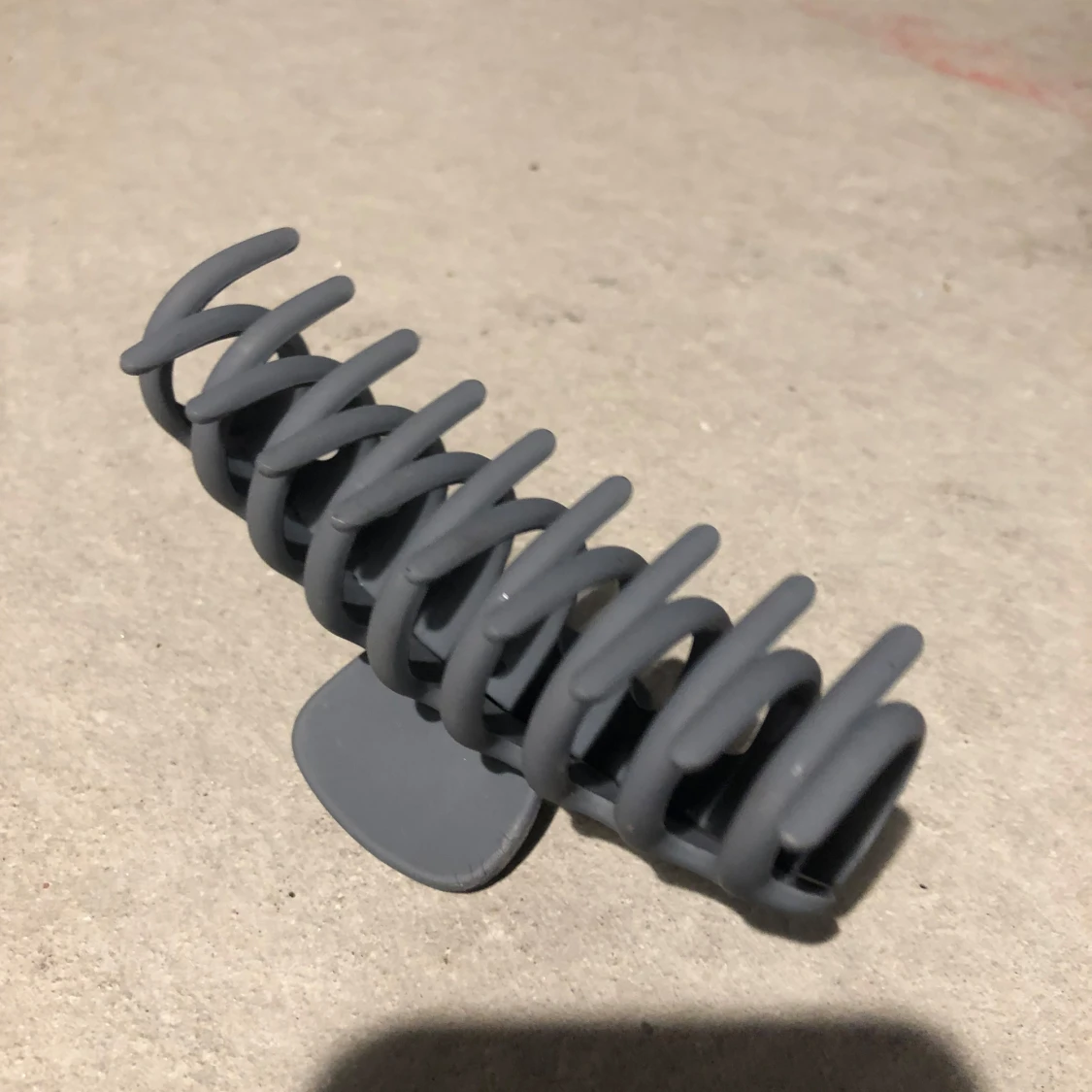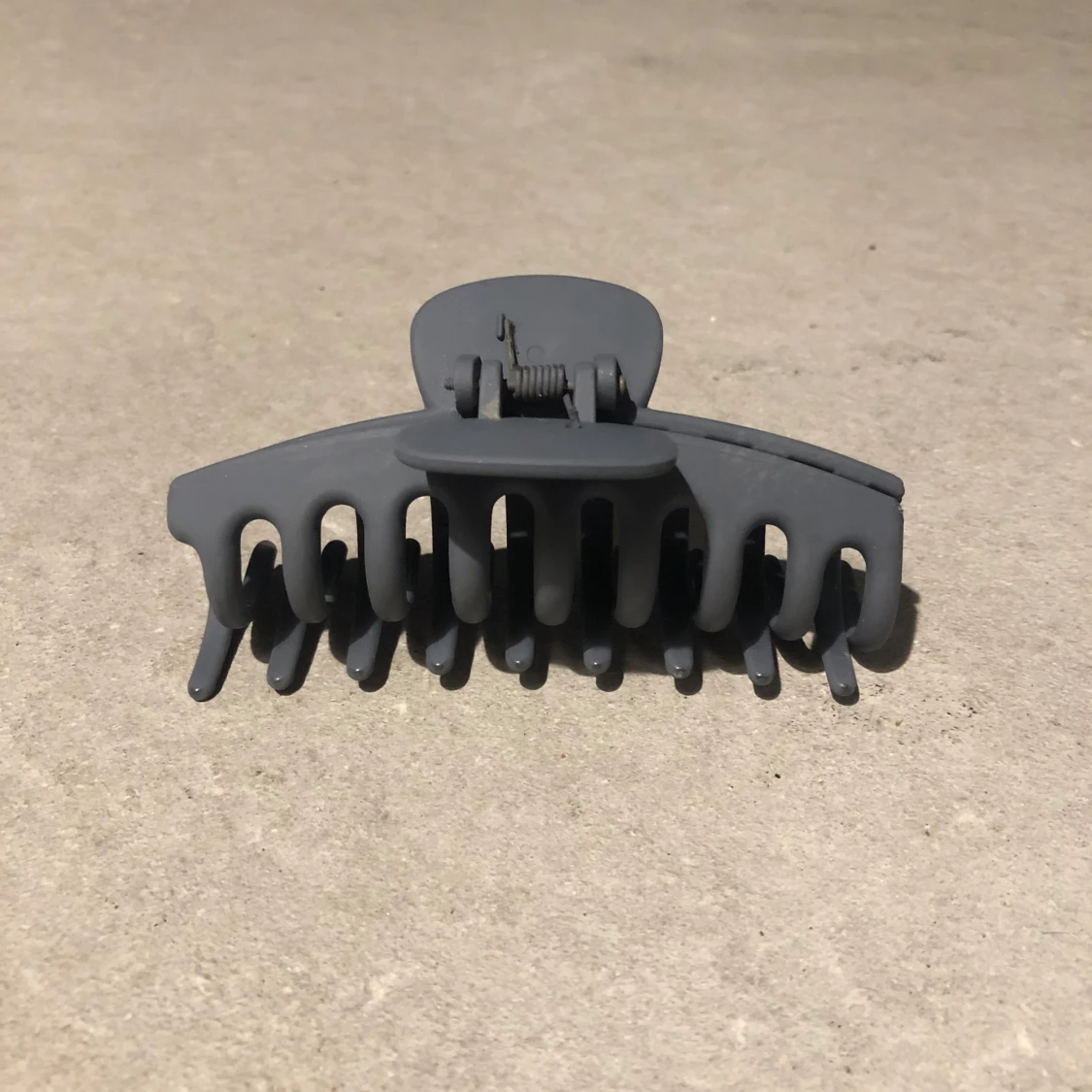 Snygg mörkgrå hårklämma med matt finish och breda, rundade tänder som håller håret på plats. Perfekt för att snabbt fixa en chill uppsättning eller hålla undan håret när du pluggar eller tränar. Enkel och stilren design som passar till allt.