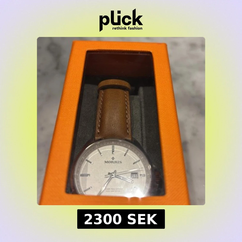 Stilren klocka från Morris. Den har ett brunt läder band med en vit klassisk design. Nypris är 2795kr som ni kan se på bilden. Jag säljer den för 2300!✅Den är helt oanvänd! Tveka inte på att skriva om ni har några funderingar! 👊🏼/Gustav