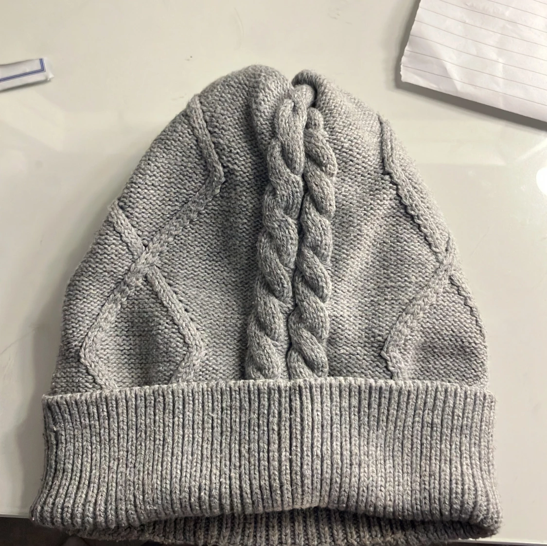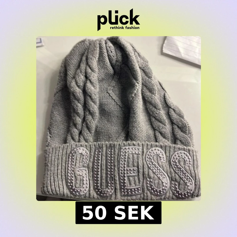 Snygg grå stickad mössa från Guess med bred uppvikt kant och stora bokstäver med silvriga nitar framtill. Flätstickad design som ger en cool och trendig look. Perfekt för kalla dagar när du vill hålla stilen.