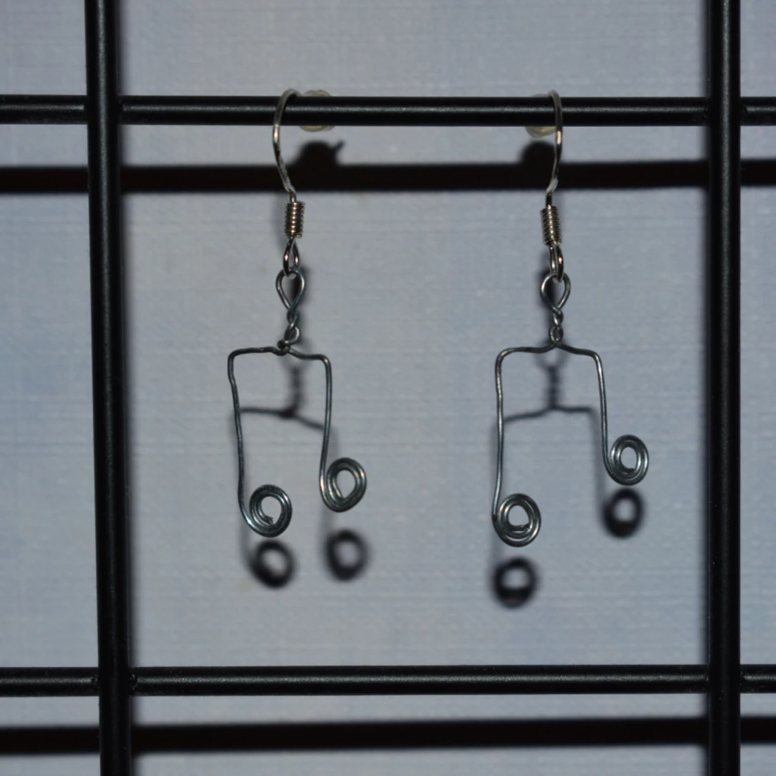 Handgjorda örhängen med noter i ståltråd. De görs vid beställning och är därmed helt oanvända. Krokarna är gjord av äkta silver. Kolla gärna in min profil för fler handgjorda örhängen :))