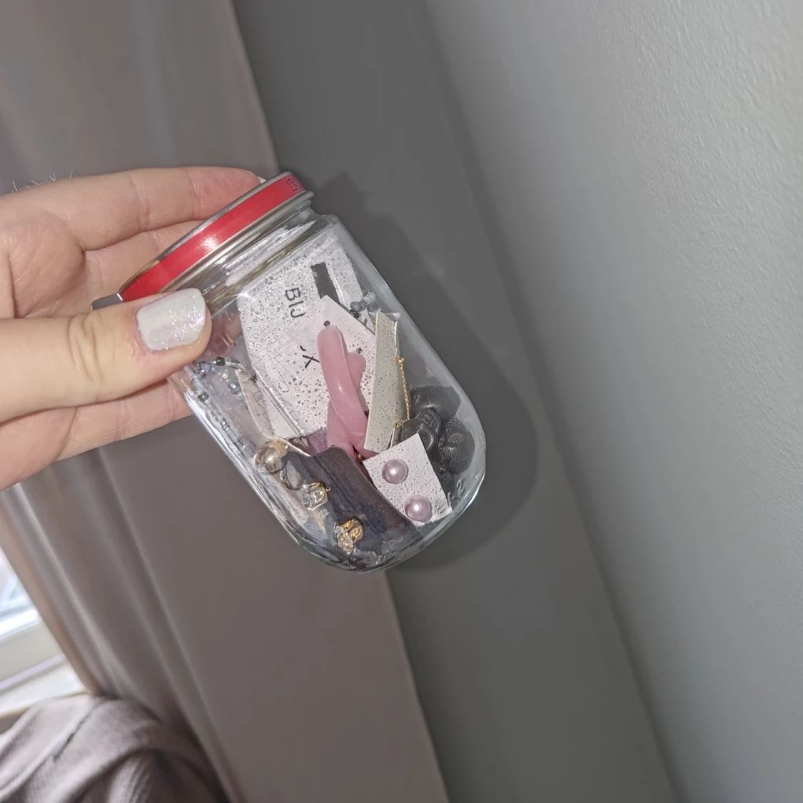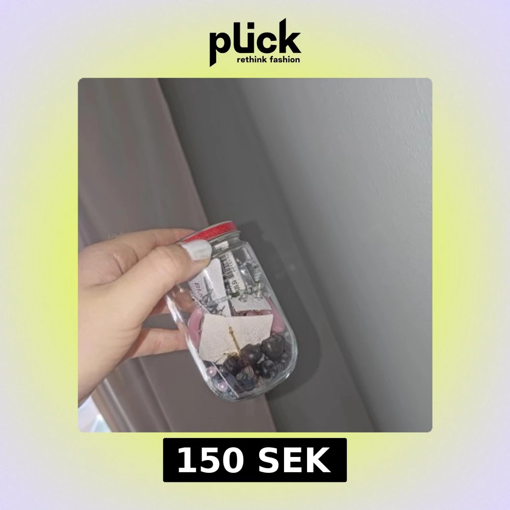 Burk fylld med olika örhängen och smycken, bland annat pärlörhängen i rosa, silver diamant örhängen, armband och ringar och massa annat. Perfekt för dej som gillar lite mysterier och som vill ha en varierad smyckessamling med olika färger och former. Allt i burken är nytt och oanvänt!