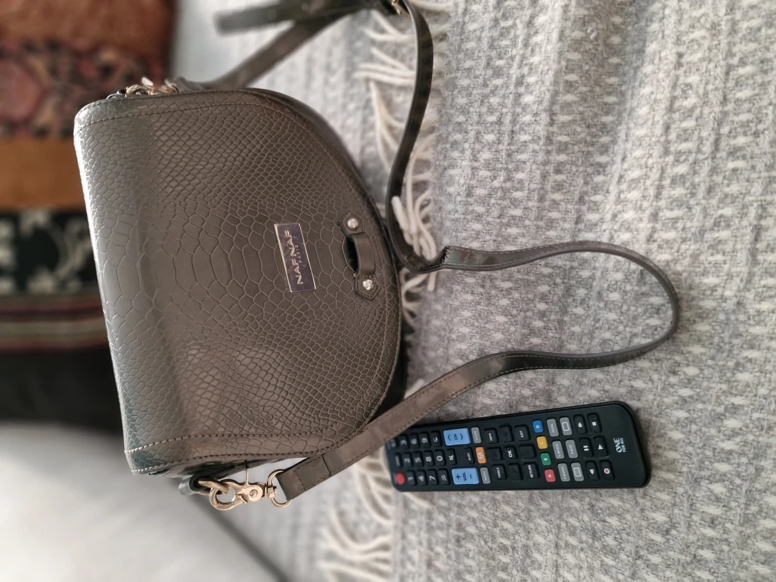 Silvrig handväska köpt i Paris från märke NAF NAF. Använd, liten skada på axelrämen men det syns knappt när man bär på väskan