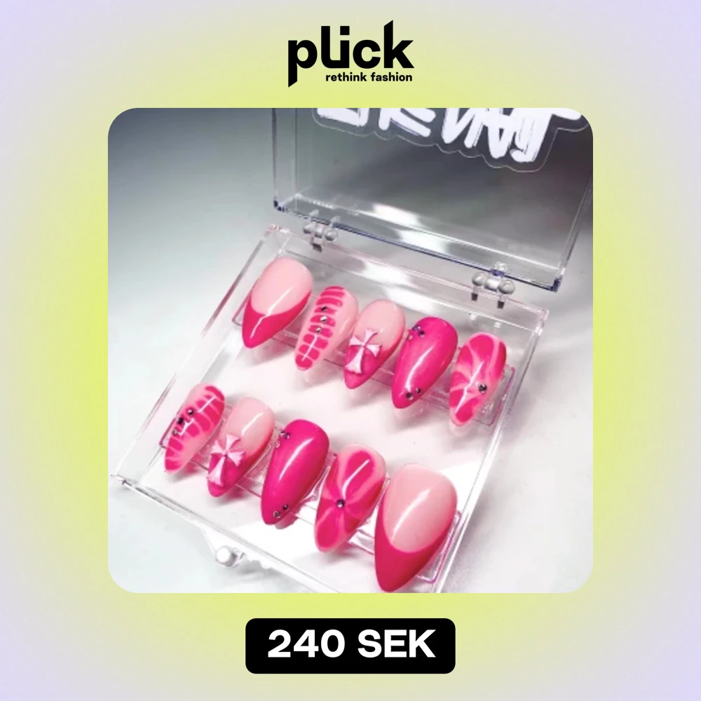 Press On Nails - M Sizing WHAT COMES WITH THE NAIL SET: • ONE NAIL FILE • ONE NAIL BUFFER • ONE CUTICLE STICK • 2 ALCOHOL WIPES • ONE NAIL GLUE If you are interested in customised press on nails you can DM me on IG: the.nailz.junkie