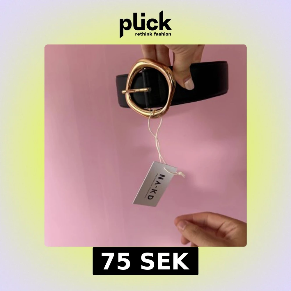 Stilrent svart bälte från NA-KD med ett unikt, rundat guldspänne. Perfekt accessoar för att lyfta din outfit. Bältet har en bred design och klassisk look.