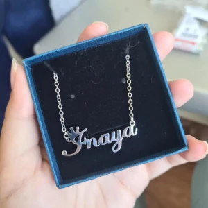 Silverpläterat halsband med valfritt namn/test. 15% rabatt vid köp av fler annonser. Samfraktar.