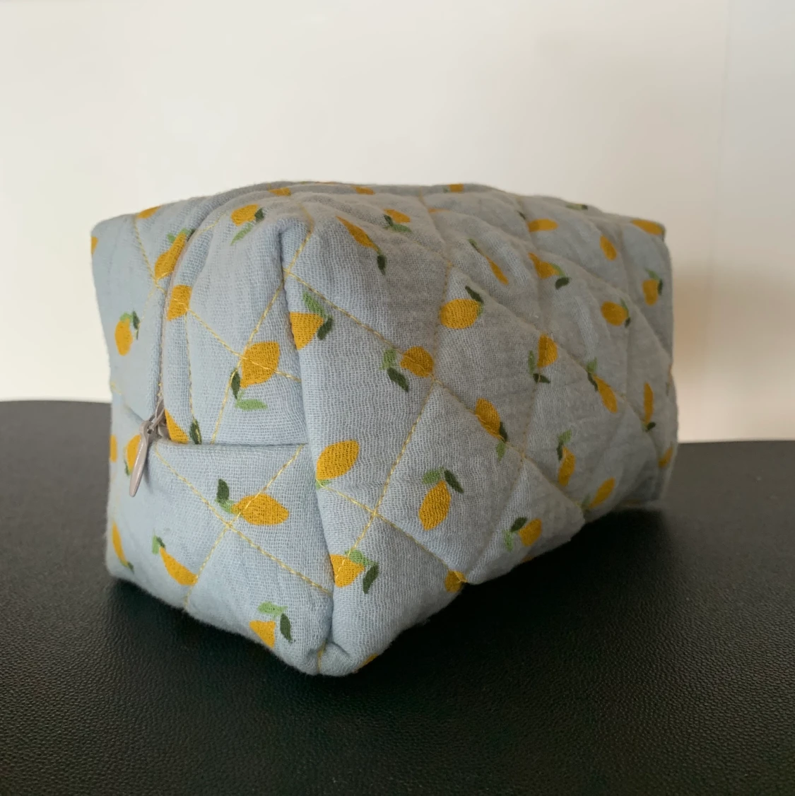En necessär som jag själv sytt. Ca 10 cm i höjd och 15cm i längden. 🍋Får plats i handväskan💗