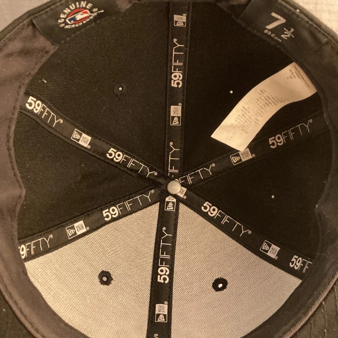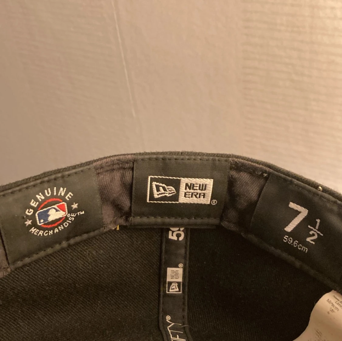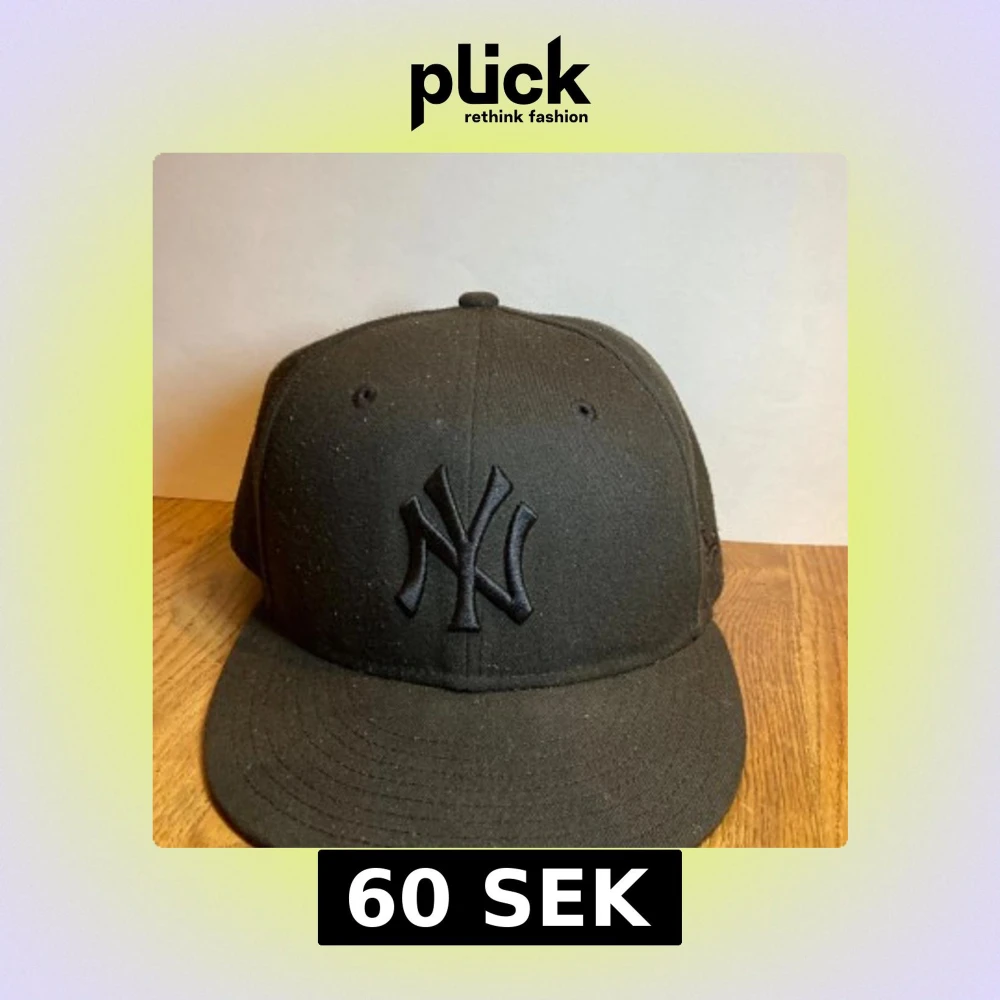Säljer en svart keps från New Era, modell 59FIFTY. Den har en broderad logga framtill och är i mycket bra skick. Perfekt för både vardag och sportiga tillfällen. Kepsen är gjord i bomull och har en normal passform.