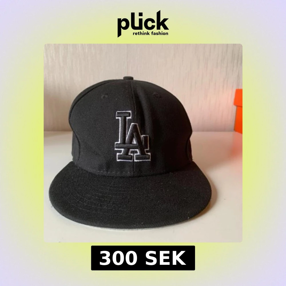 Säljer en svart New Era 59FIFTY keps med LA-logga broderad framtill i vitt. Klassisk basebollmodell med rak skärm och MLB-logga baktill. Kepsen är gjord i polyester och har en stilren look som passar till streetwear.