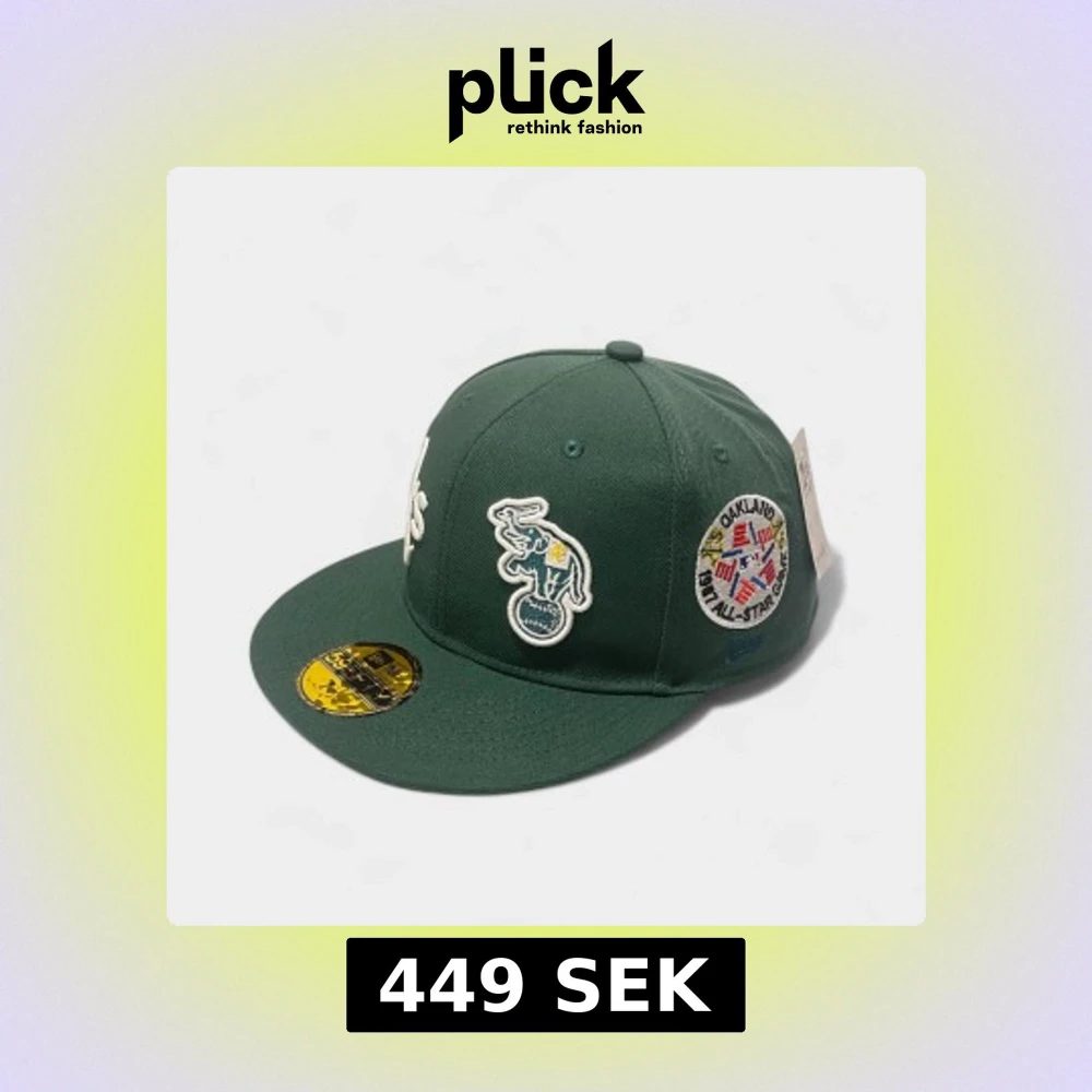 Grön 59FIFTY keps från New Era med Oakland A's logga framtill och broderade patches på sidorna. Platt skärm i samma färg och klassisk passform. Märkt med officiella MLB och World Series detaljer. Perfekt för dig som gillar baseball och streetwear.