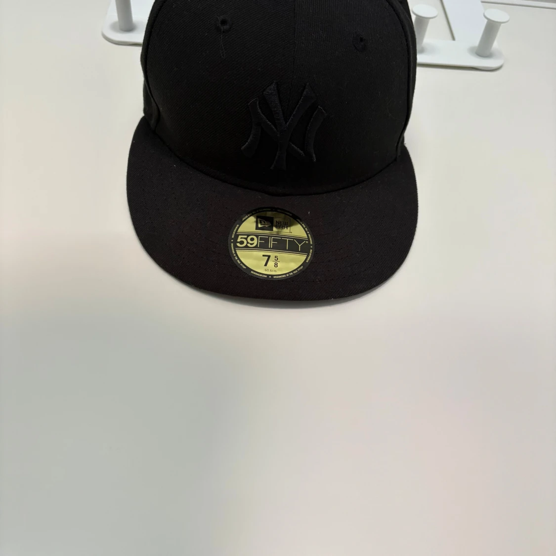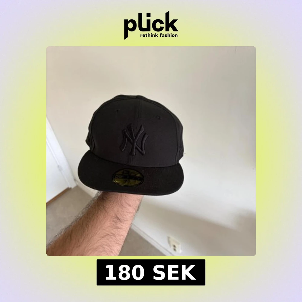 Säljer en svart New Era 59FIFTY keps med New York Yankees-logga framtill. Klassisk flat brim och broderad logga i svart ton. Kepsen är tillverkad i 100% polyester och har en stilren look som passar streetwear. Perfekt för dig som gillar sportiga och urbana accessoarer.