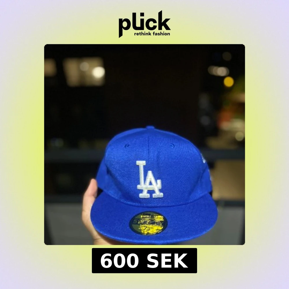 Snygg blå LA Dodgers 59FIFTY keps från New Era med broderad LA-logga framtill och vit brodyr på sidan med texten 'Los Angeles, California established 1890 West Coast!'. MLB-logga bak och klassisk flat skärm. Perfekt för dig som gillar streetstyle.