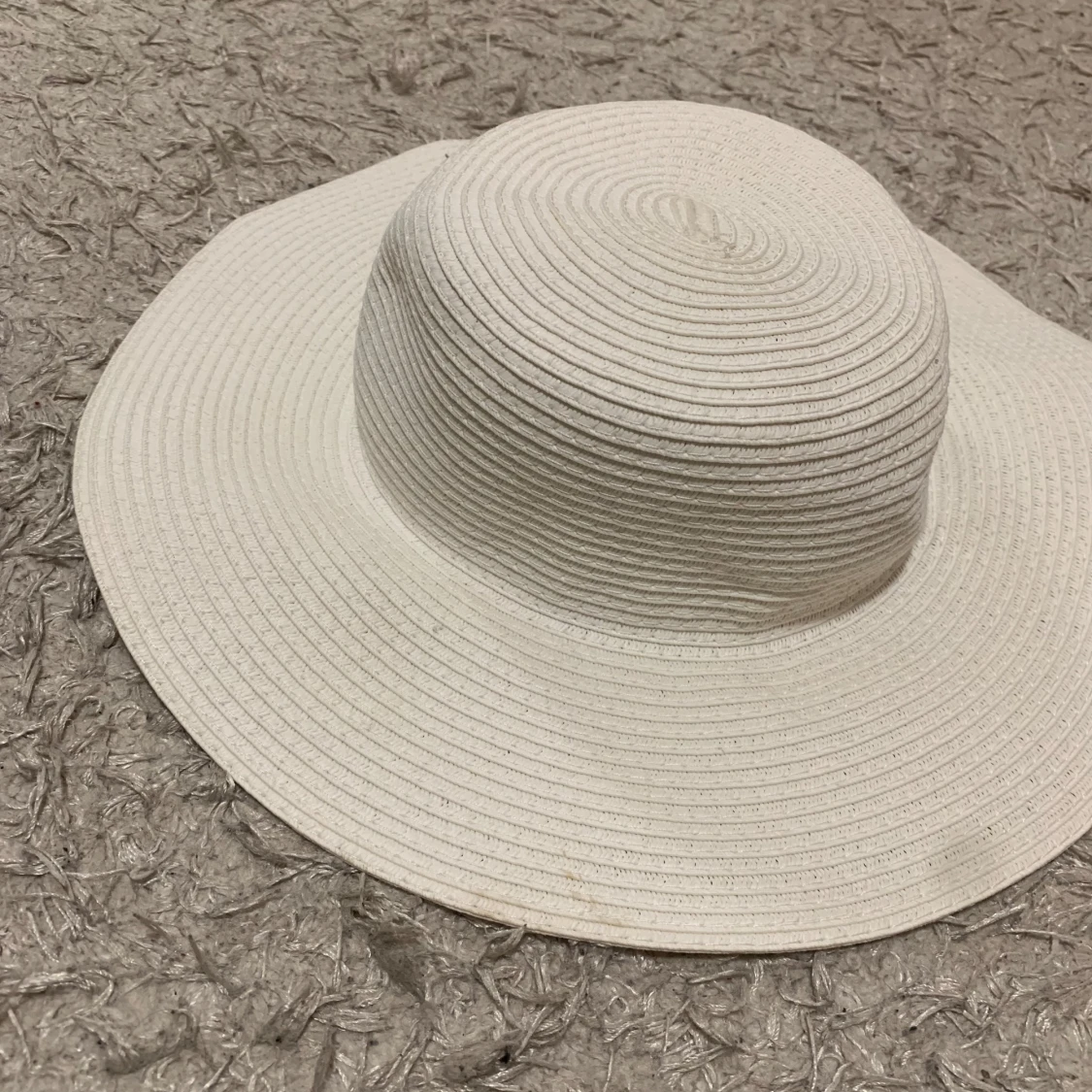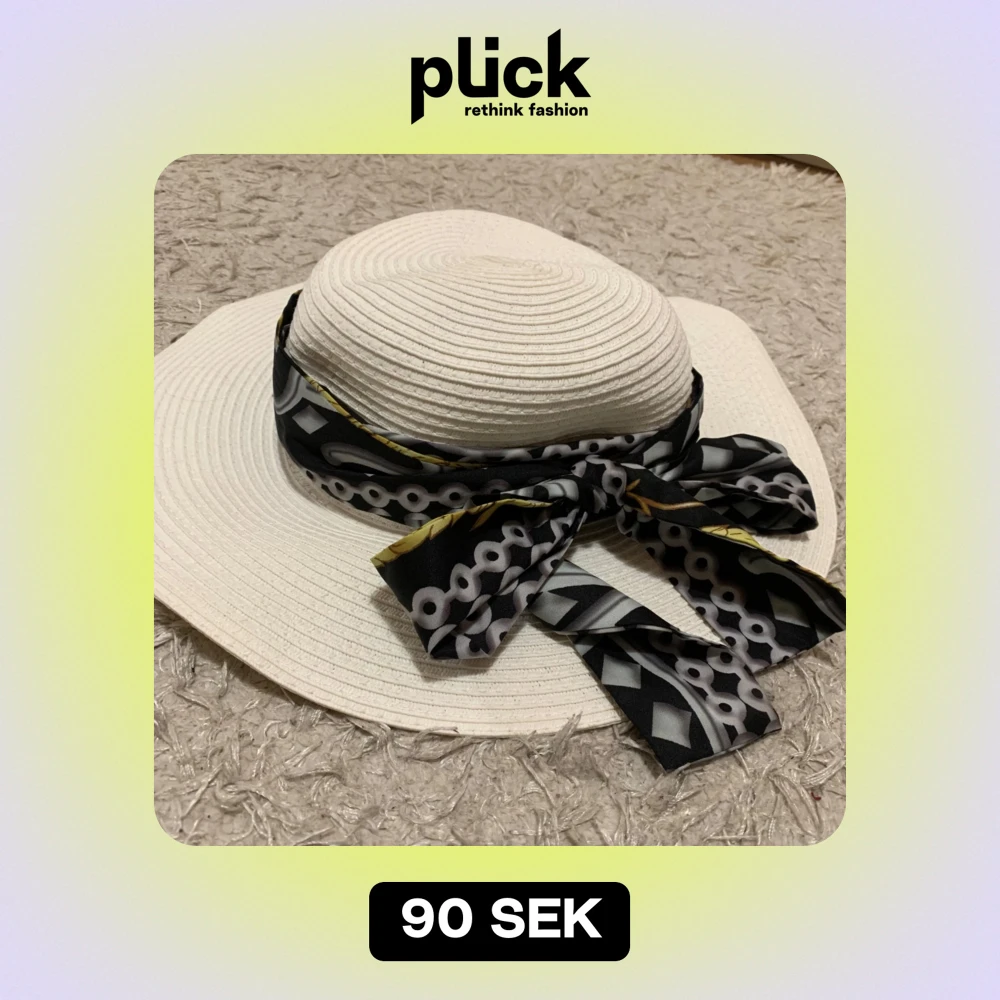 Snygg vit solhatt perfekt för sommardagar! Hatten har en bred brätte och kommer med två avtagbara band: ett svartvitt mönstrat och ett blåvitt randigt. Banden kan knytas i en rosett för extra stil. Perfekt för stranden eller en dag i parken!
