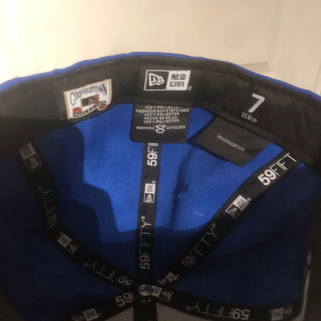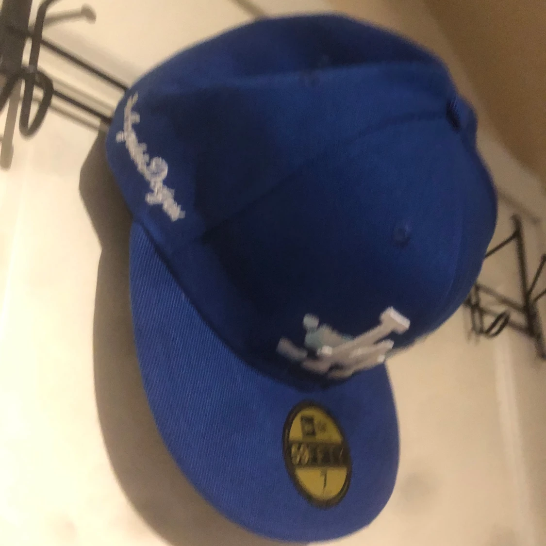 Säljer en blå New Era 59FIFTY keps med LA-logga framtill. St 7 (55,8) cm. Ny skick