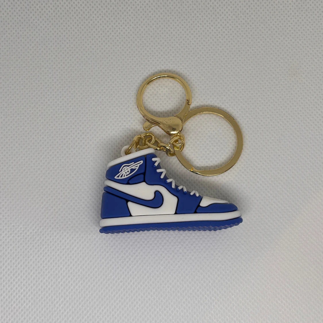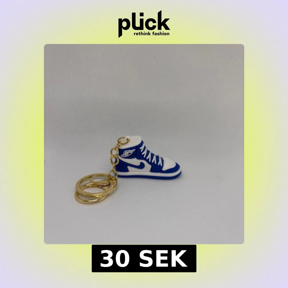 Nyckelring formad som en Nike Jordan 1 sneaker i blått och vitt med klassisk high-top siluett och detaljerad logga på sidan. Perfekt accessoar för sneakerheads som vill visa sin stil även på nyckelknippan.