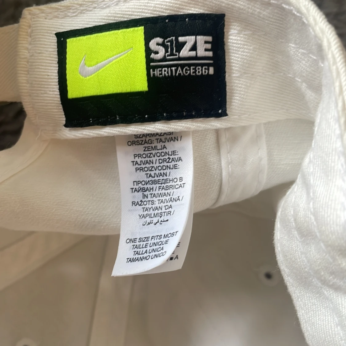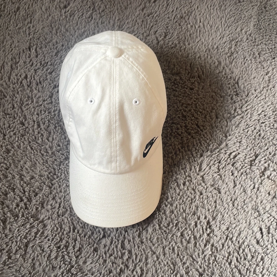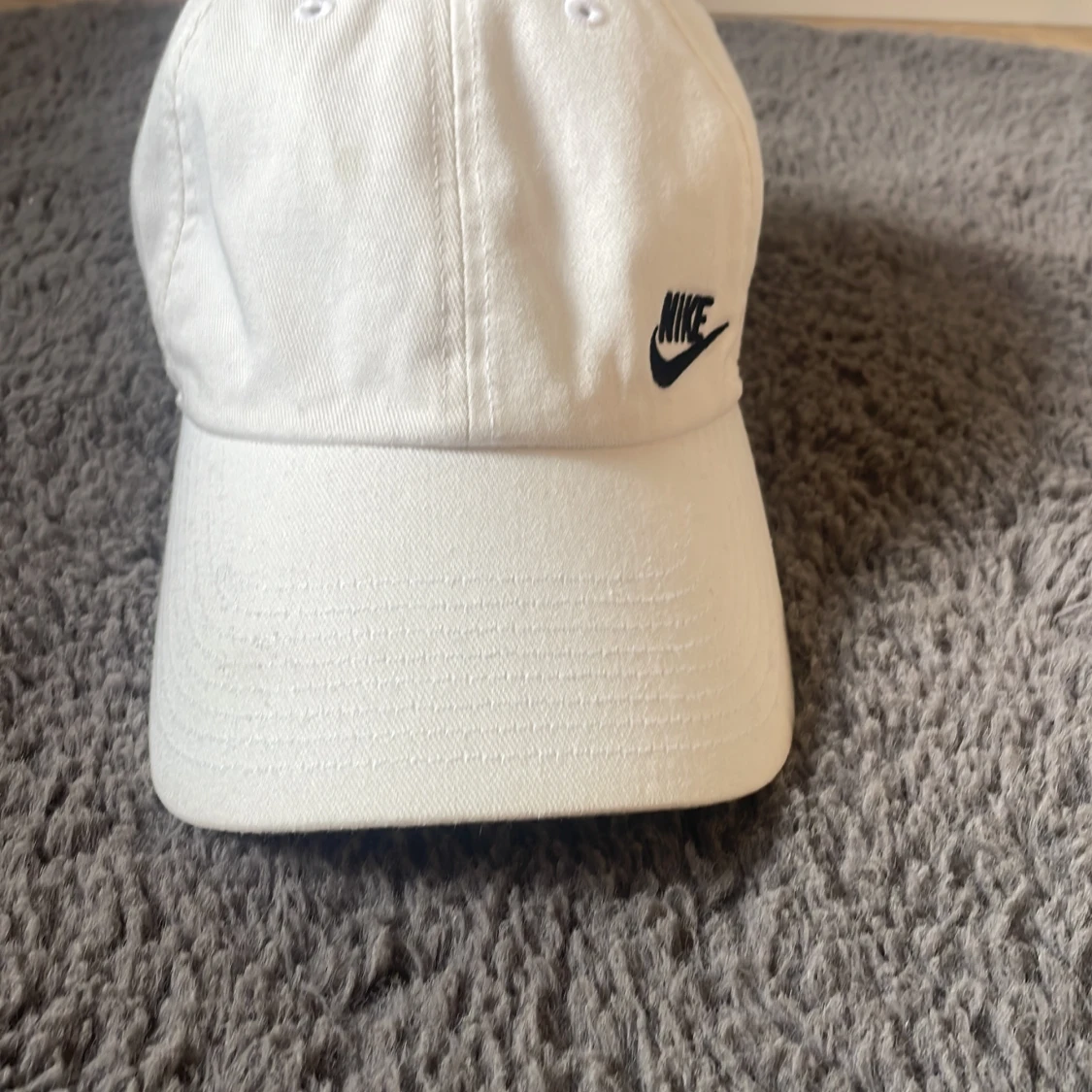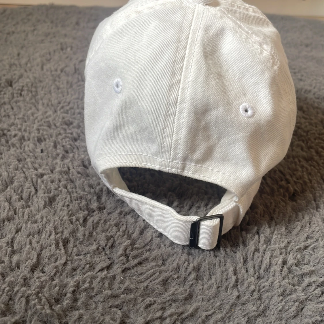 Snygg vit keps från Nike med klassisk böjd skärm och svart broderad Nike-logo framtill. Justerbar rem baktill för perfekt passform. Tillverkad i bomull, perfekt för en clean och sportig look.