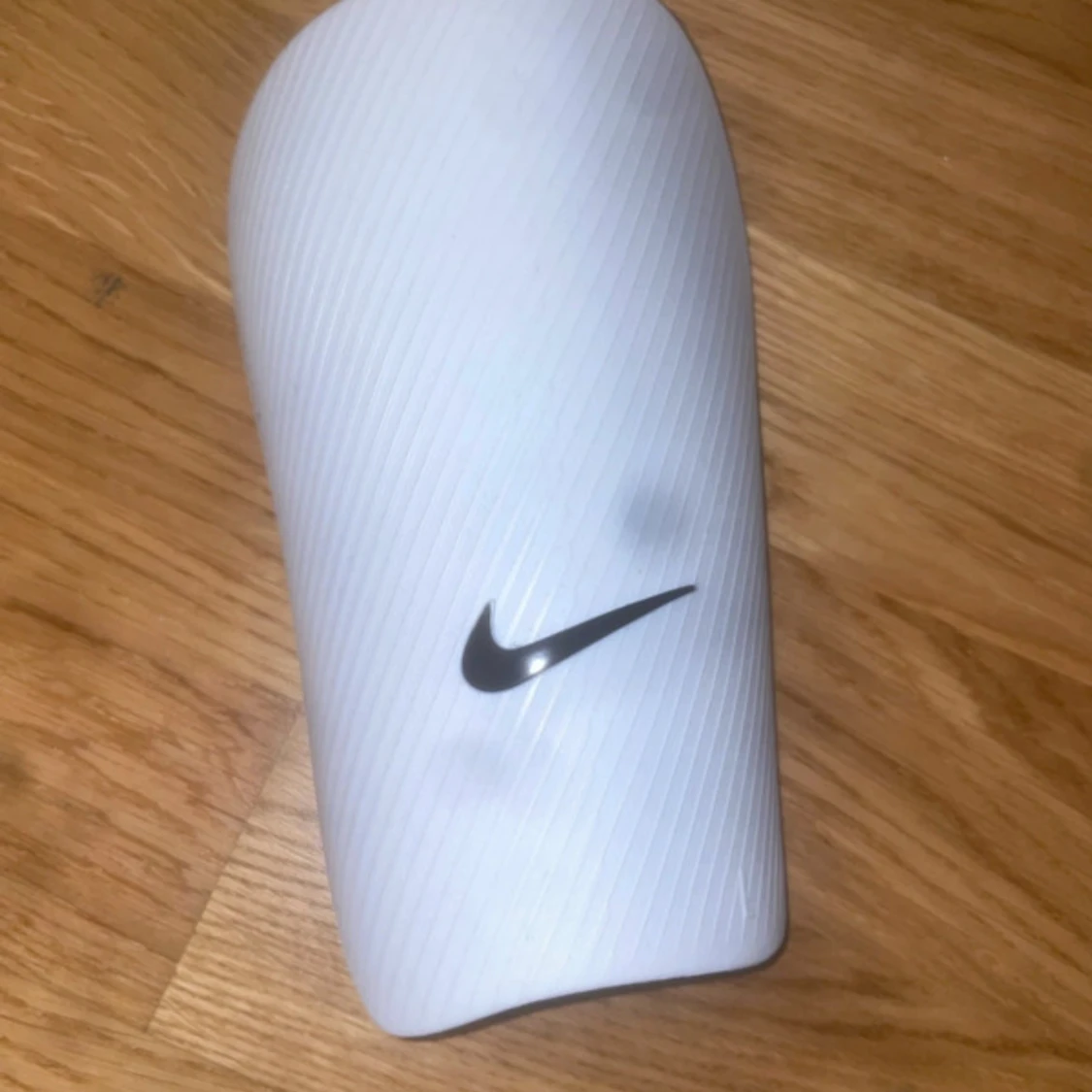 Snygga vita Nike benskydd i lättviktigt material. Kommer med originalförpackning och förvaringspåse. Några mindre tryckmärken syns på ytan, men i övrigt i gott skick. Perfekta för fotbollsträning eller match. Helt ny aldrig använda