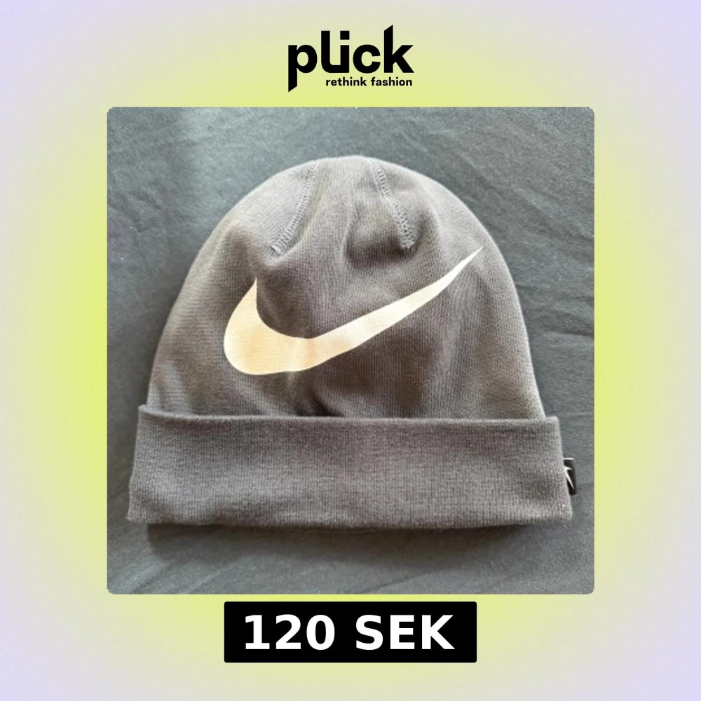 Snygg grå mössa från Nike med det ikoniska swoosh-loggan framtill. Tillverkad i ett mjukt och bekvämt material, perfekt för kyliga dagar. Mössan har en enkel design med uppvikt kant och är lätt att matcha med olika outfits.
