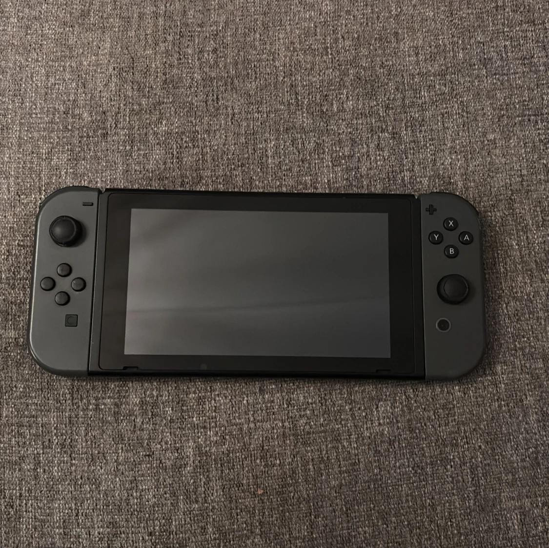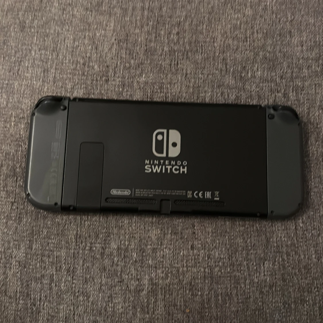 Säljer en Nintendo Switch med grå Joy-Con och tillhörande svart hårt fodral med röd Nintendo Switch-logga. Fodralet har plats för konsolen och extra spelkort. Perfekt för gaming hemma eller på resan. Kommer med Fifa 21 och Pokemon Let’s go Pikachu