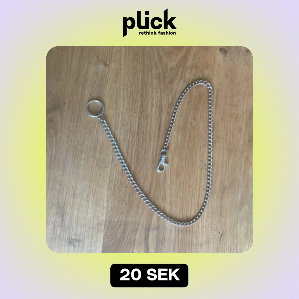 Den första kedjan är 70 cm som sitter högt upp på låret och är lite rosa/ koppar färgat på kanterna. Den andra är 1m och sitter runt knä nivå på mig jag är 156 och den är silver färgad. 10 kr styck för båda 15-20kr