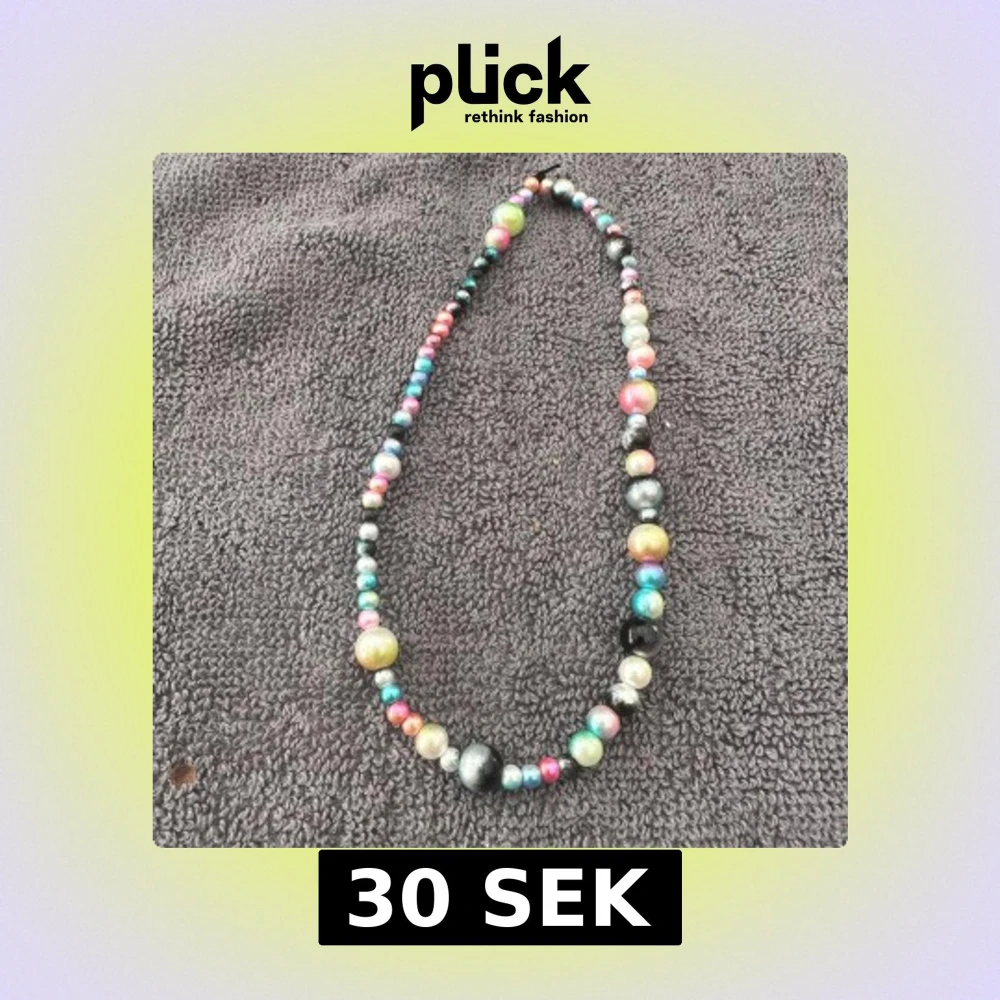 Unikt fotlänk med pärlor i olika storlekar och färger som rosa, blå, grön, silver och svart. Pärlorna har en skimrande yta och ger ett lekfullt och trendigt intryck. Perfekt accessoar för att liva upp din outfit.