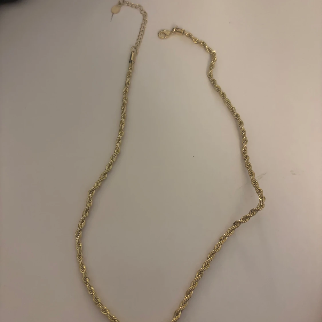 Elegant guldfärgat halsband med en vriden kedjedesign. Perfekt för att lägga till en touch av stil till vilken outfit som helst. Lätt att matcha med andra smycken.
