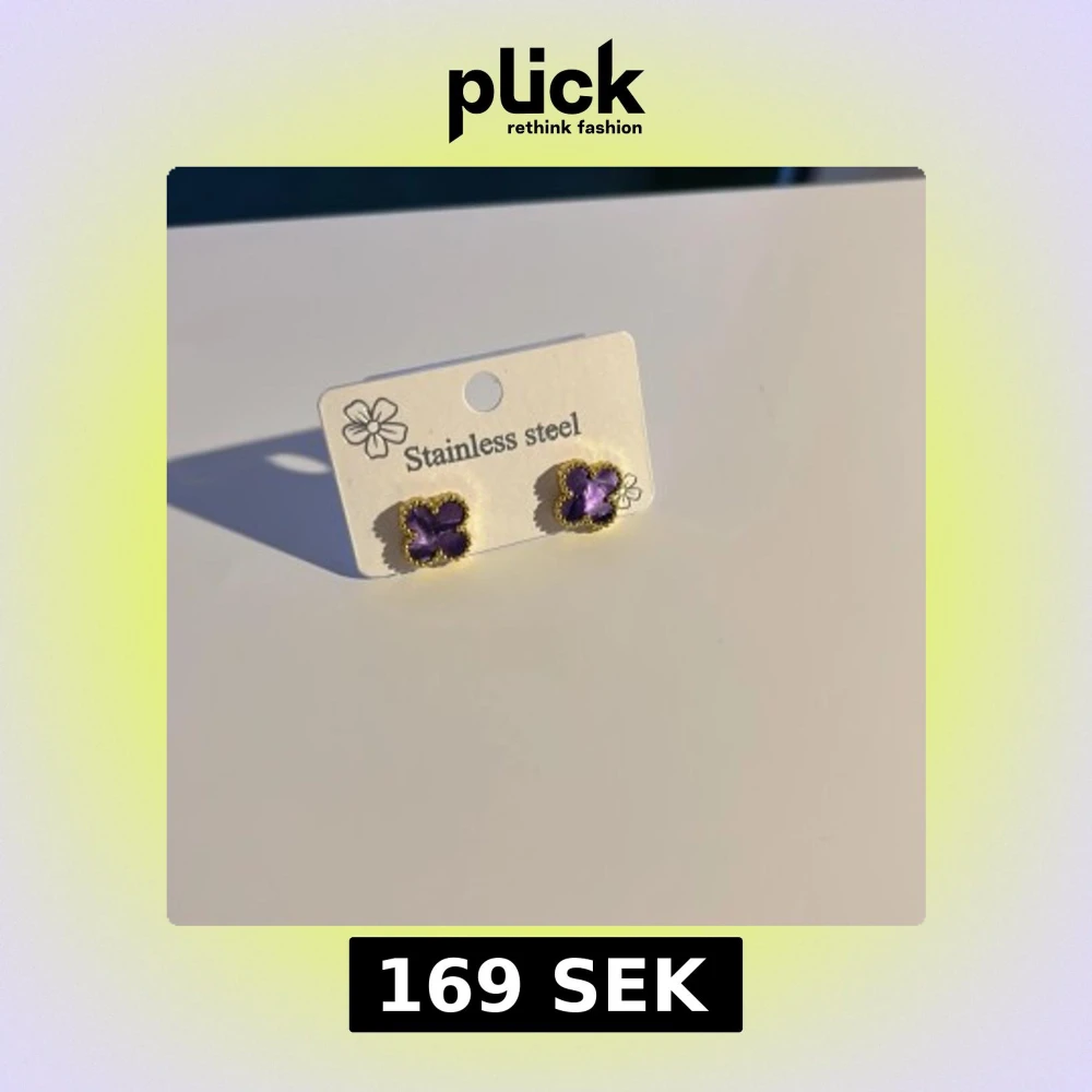 Snygga örhängen i lila och guld med fyrklöverformad design. Tillverkade i rostfritt stål och har en glansig lila mitt omgiven av guldfärgade detaljer. Perfekt för att ge din look lite extra färg och stil. Mvh clover.se