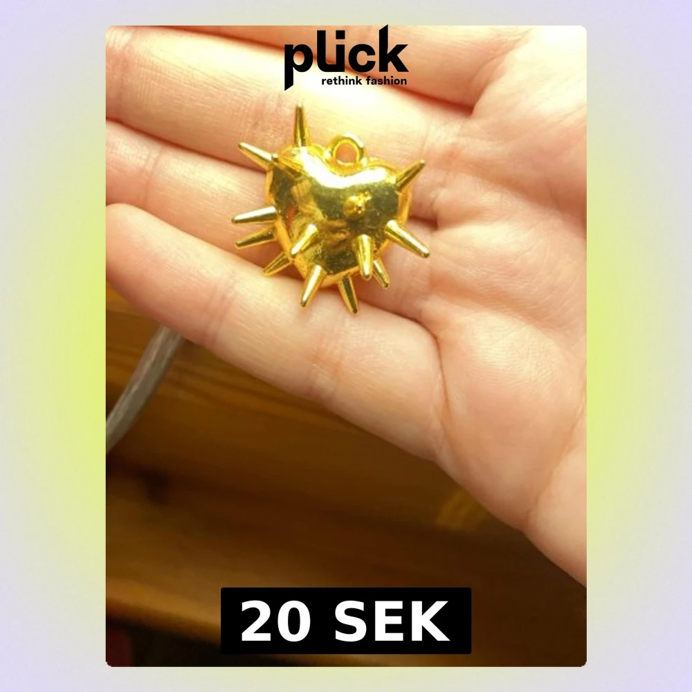 Unikt hängsmycke i form av ett hjärta med flera utstickande spikes, helt i blank guldfärgad metall. Perfekt som statement-accessoar till halsband eller nyckelring. Ger en edgy och cool vibe till din stil.