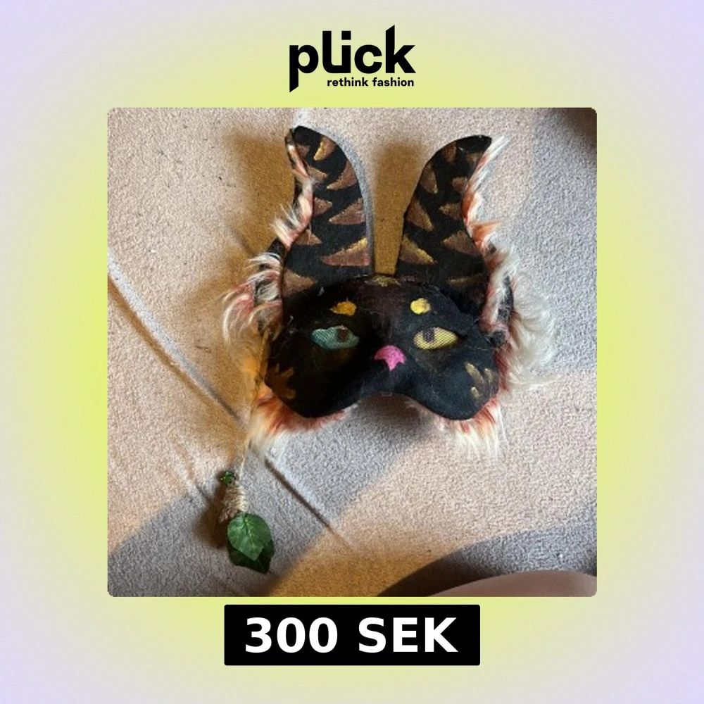 Enkel handgjord Therian mask som sitter bra på huvudet och man ser bra i. Den har ett smycke som faller ner. (Du ser den på tredje bilden) där den gröna sten är enkel att ta bort om du inte tycker om den. Om du har några frågor kan du kontakta mig. Och om du vill att jag ändrar något när du köpt den eller vill prata om priset säg bara till! ❤️