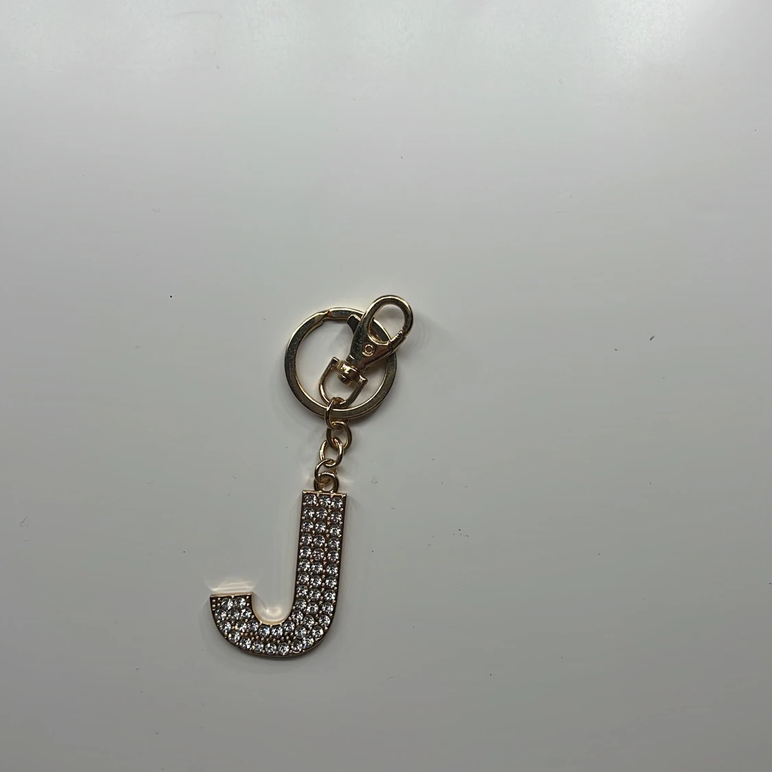Snygg nyckelring i guld med bokstaven J täckt av glittrande stenar på ena sidan och blank guldfinish på andra. Perfekt accessoar till väskan eller nycklarna för dig som vill sticka ut med lite extra bling.