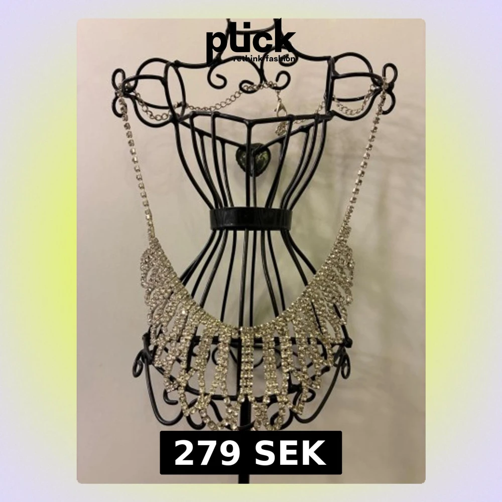 Säljer en unik och glittrig halsband i silver med massor av strassdetaljer som ger en riktigt lyxig vibe.