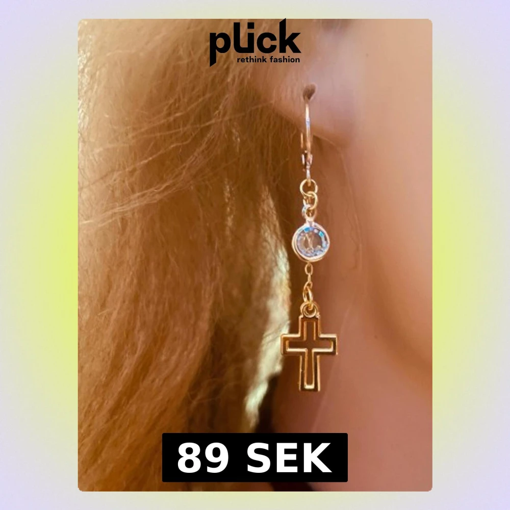 1 snyggt örhänge i guld-look med ett hängande kors och en liten glittrande sten ovanför. Örhänget har en tunn, elegant form och passar perfekt för dig som gillar detaljer med lite edge. Perfekt accessoar för att lyfta din stil.