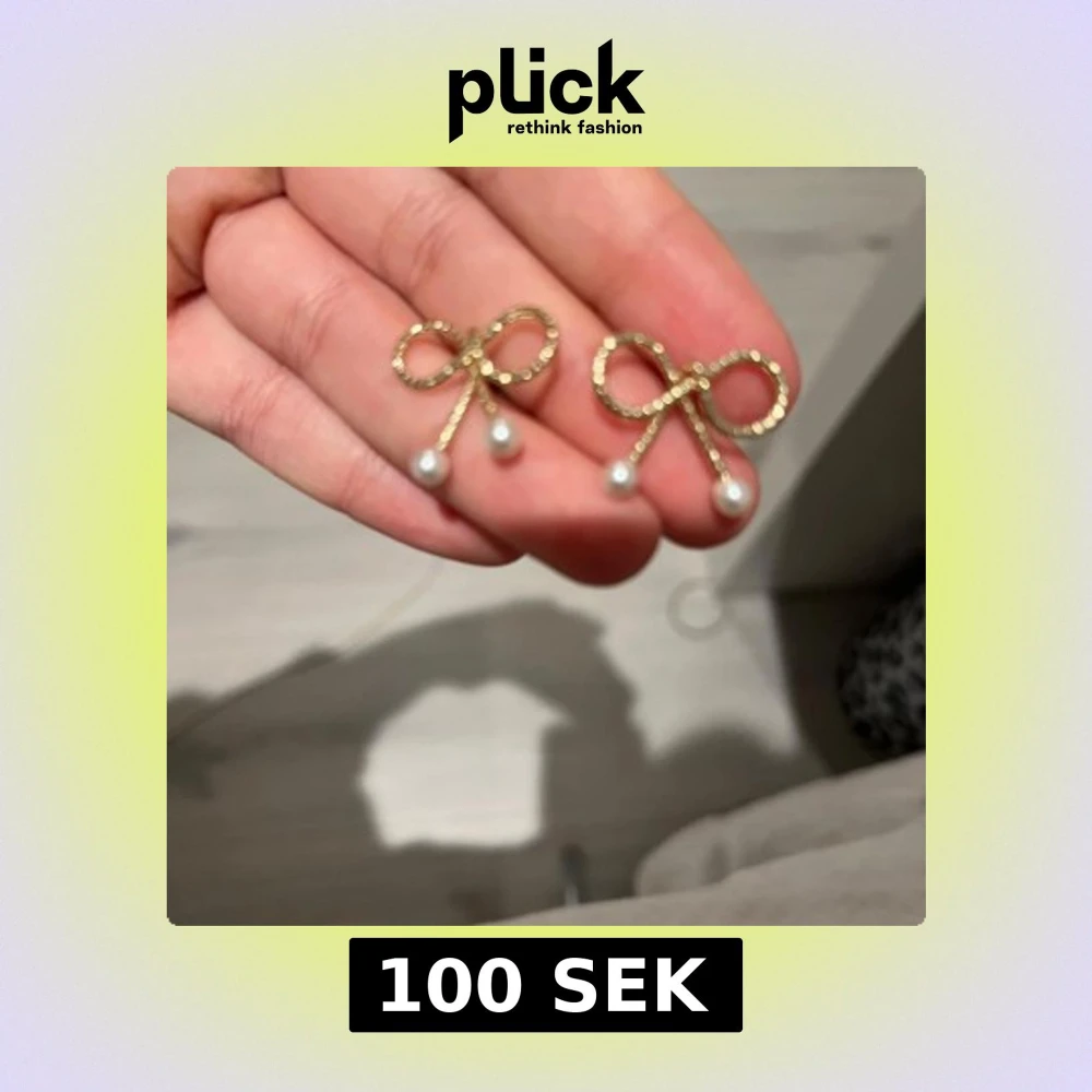 Säljer ett par söta örhängen i form av rosetter i guldton med små vita pärlor som hänger ned. Perfekta för att ge en gullig och elegant touch till din stil.