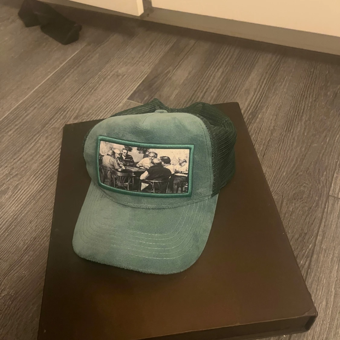 Snygg grön keps från emilio pendenza med ett unikt tryck på framsidan. Kepsen har ett nätmaterial baktill och en justerbar rem för perfekt passform.