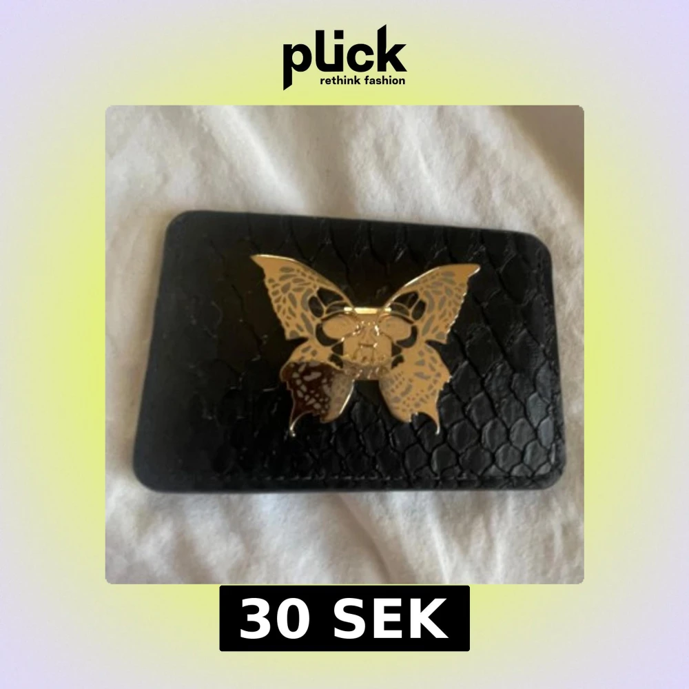 Svart plånbok med fjärilsdetalj