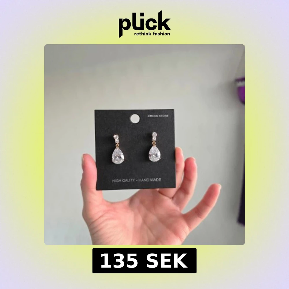 Snygga handgjorda örhängen med stora droppformade zirkonstenar. De har en elegant design med flera mindre stenar ovanför den stora, vilket ger en lyxig känsla. Perfekta för att ge en extra touch av glamour.
