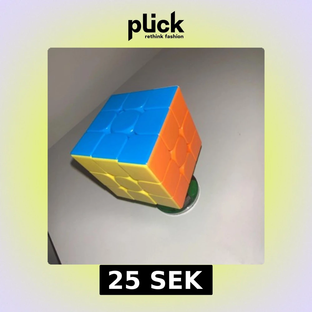Säljer en klassisk 3x3 Rubiks kub i plast med färgerna blå, gul, grön och orange. Perfekt för dig som gillar hjärngympa och vill utmana dig själv med speedcubing eller bara lösa den på fritiden.